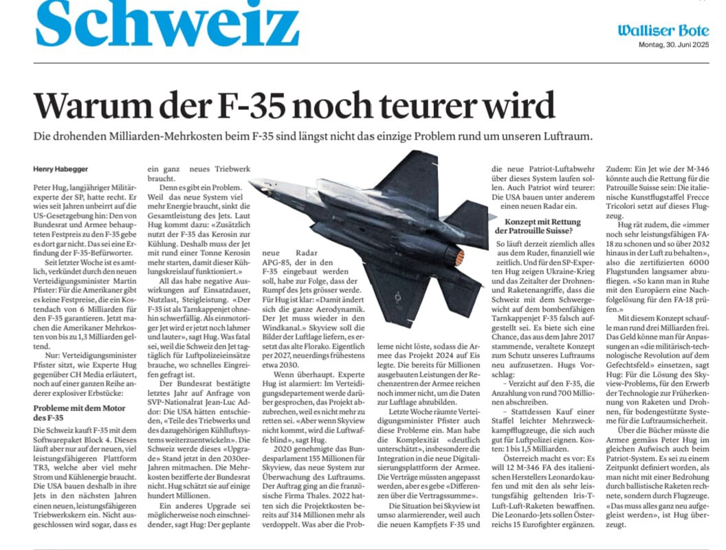 2025-06-30 Walliser Bote | Henri Habegger | Warum der F-35 noch teurer wird